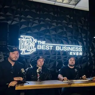 To give your sign a more dynamic look, you can hang it against a geometric wallpaper as done by our favorite clients, The Best Business Ever podcasters.