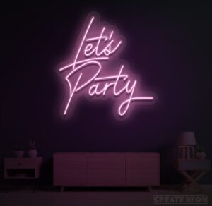 Gather all the hard-core partiers, set up the dance floor, and siphon out some extraordinary beats! Nothing shouts "fun" in excess of a Party neon sign. Tell everybody that they are in the best time to let free, shake their anxieties off, and let out their inner wild child. A neon Let’s Party sign encourages everybody that they can leave their issues outside the entryway and focus instead on grooving to awesome tunes.
