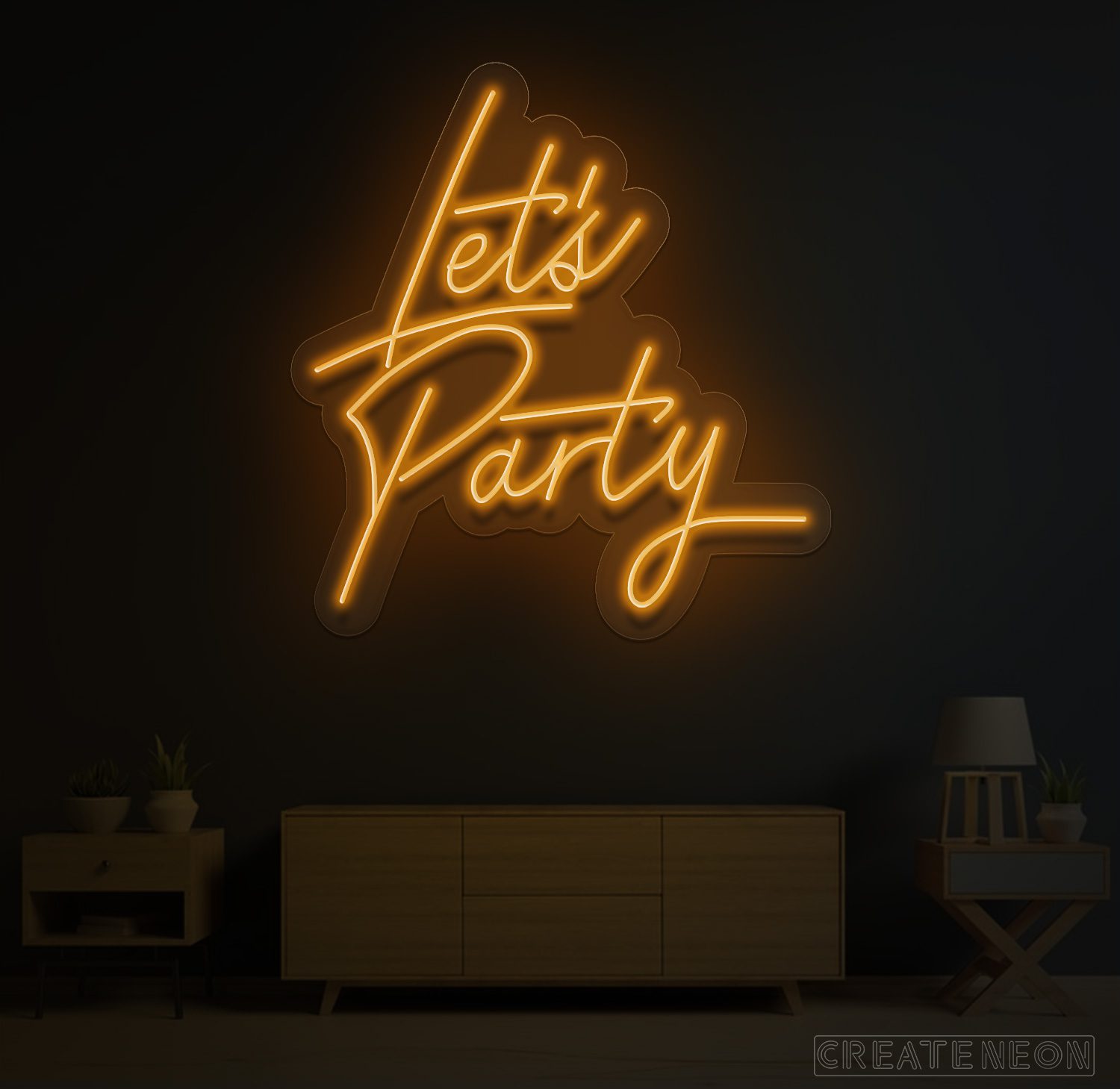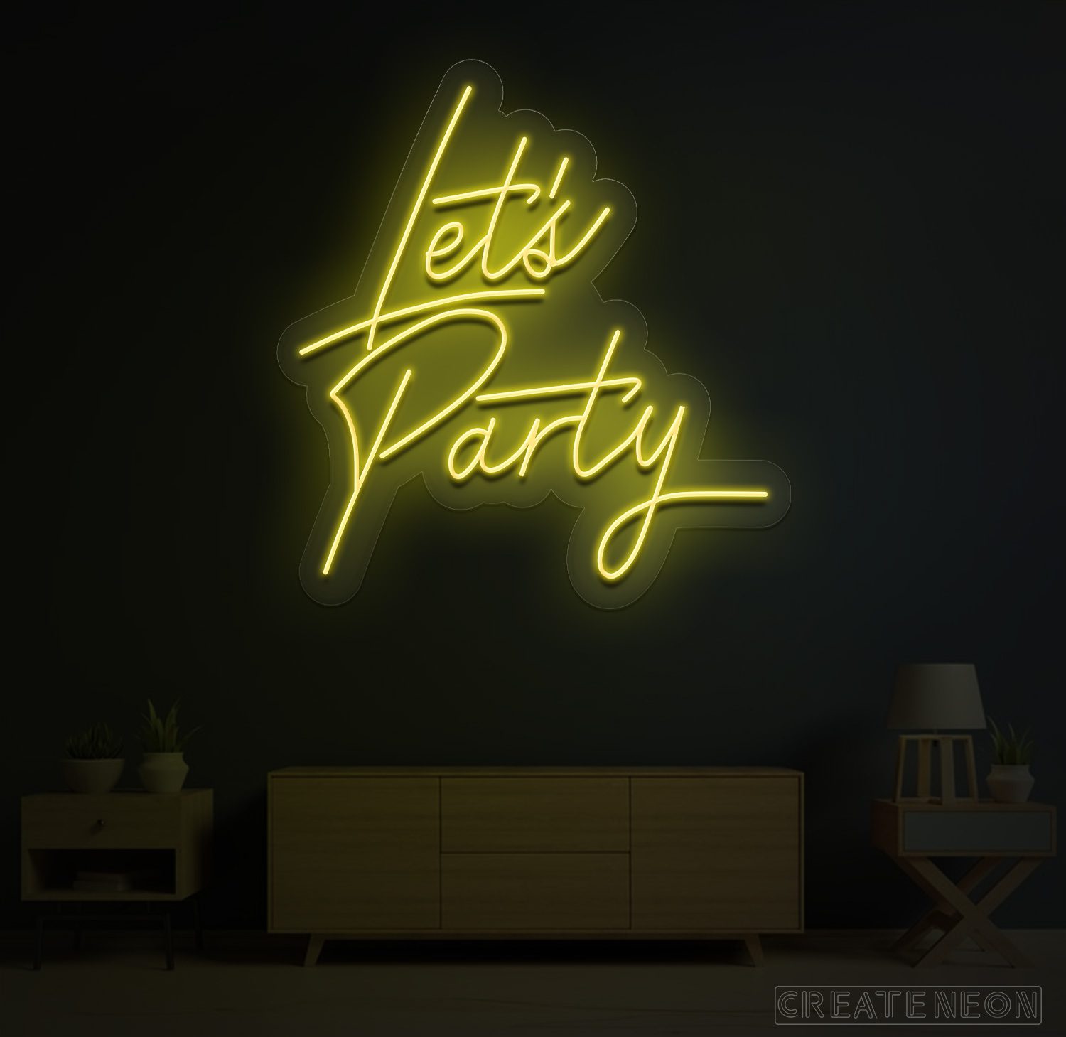 Post this party neon sign on a wall of a bar, pub, or club immediately turning on the "Friday!" mindset of everybody. It is a simple but incredible method of saying, "Forget your concerns for some time and live it up." The Let's Party neon sign statements will without a doubt convince you to party hard. So get your drinks and put on the dancing shoes. It's time to get the party started with this inspirational high-quality neon.